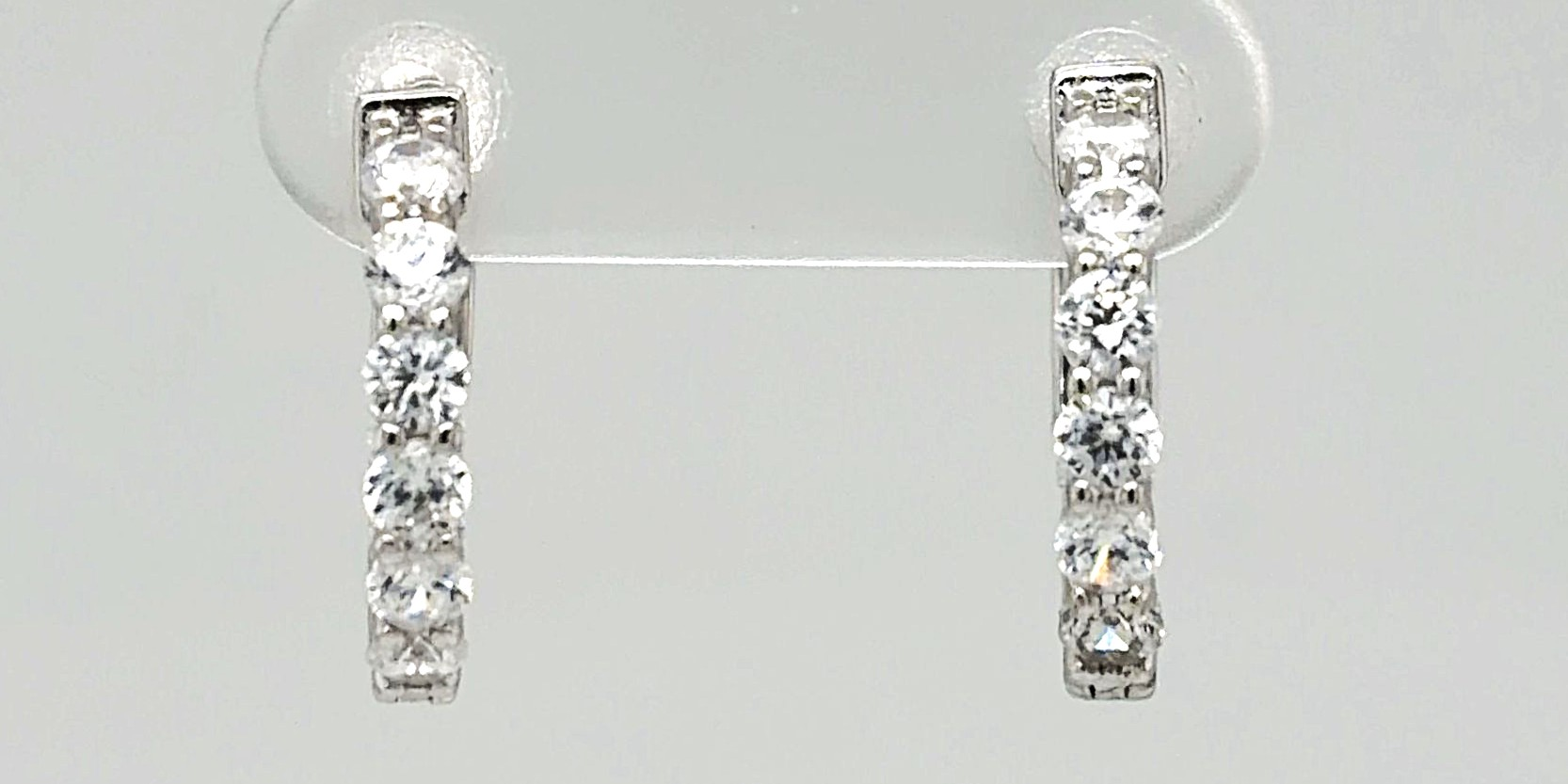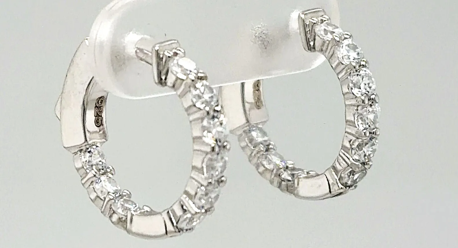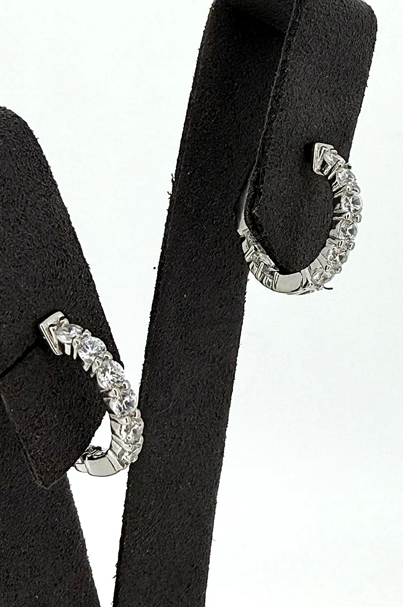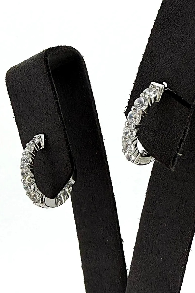 Delicate and elegant, these solid silver huggie-style hoop earrings are adorned with sparkling cubic zirconia stones for subtle brilliance. The compact design hugs the earlobe comfortably, and the hinged closure ensures a secure, easy-to-wear fit. Crafted from solid silver, the earrings weigh 2.8 grams and measure 15mm x 16mm x 2.5mm, providing a lightweight yet stylish accessory for daily wear or special occasions. The polished finish enhances the shine of the CZ stones, making these huggie hoops a timeless jewellery staple. Perfect as a gift or a personal treat, these silver CZ huggie hoops offer understated glamour with classic appeal.