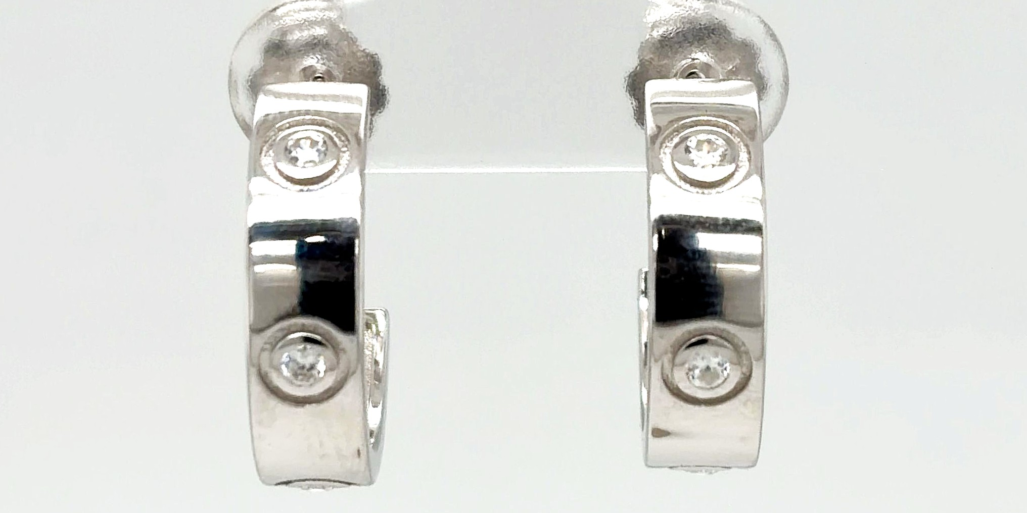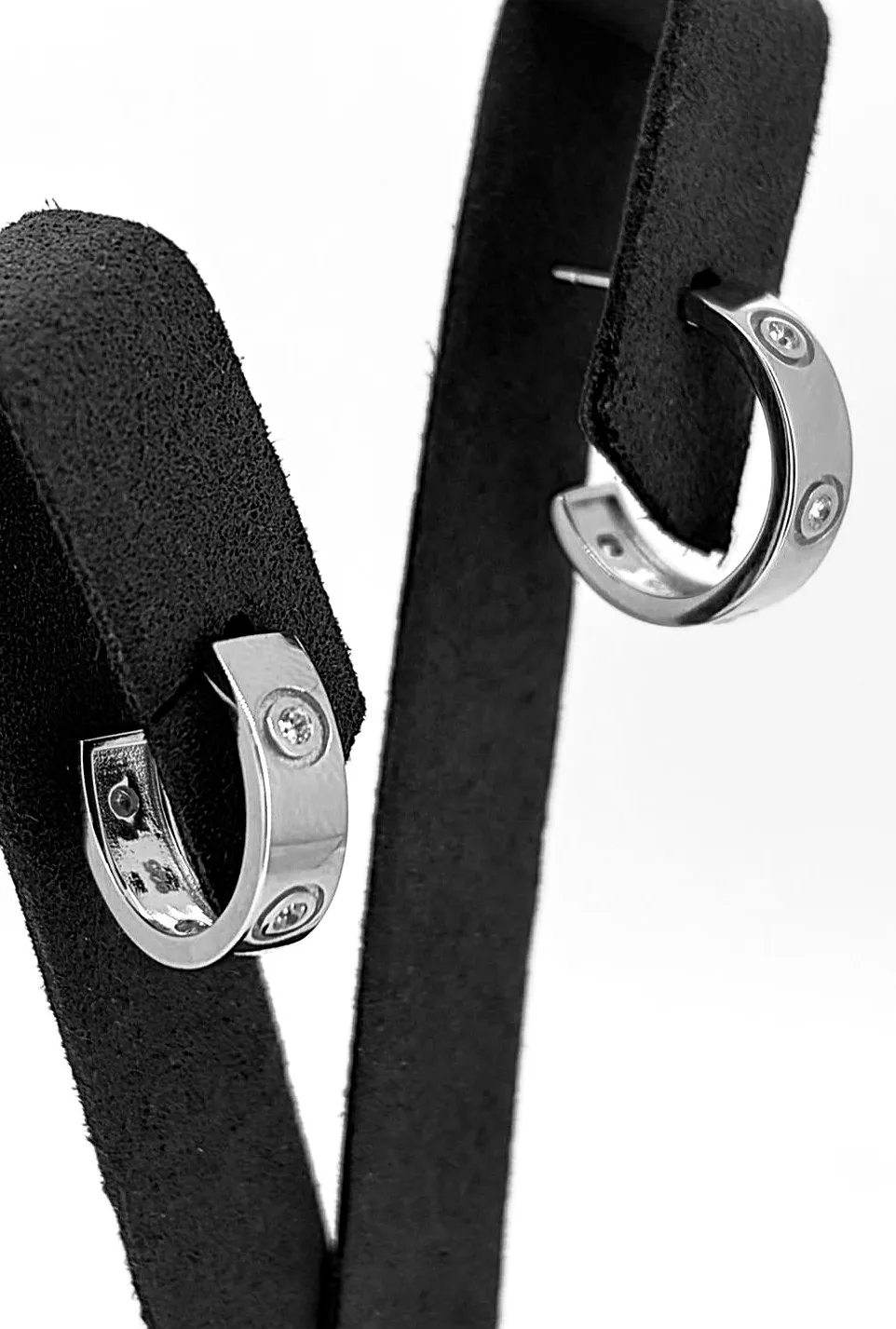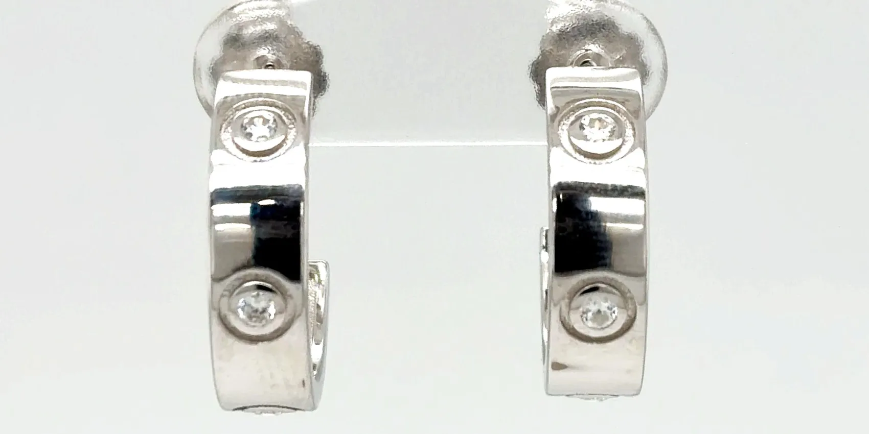 Modern and stylish, these solid silver half hoop stud earrings feature a unique screw-inspired design, offering contemporary elegance with a subtle edge. The half hoop shape provides a sleek profile that sits comfortably on the earlobe, while the polished finish enhances the sculpted detailing. Crafted from solid silver, the earrings weigh 4.8 grams and measure 18.7mm x 5.2mm, making them lightweight yet substantial enough to stand out. The screw-style design adds texture and interest, perfect for everyday wear or special occasions. A versatile addition to any jewellery collection, these half hoop studs combine modern design with classic silver craftsmanship.