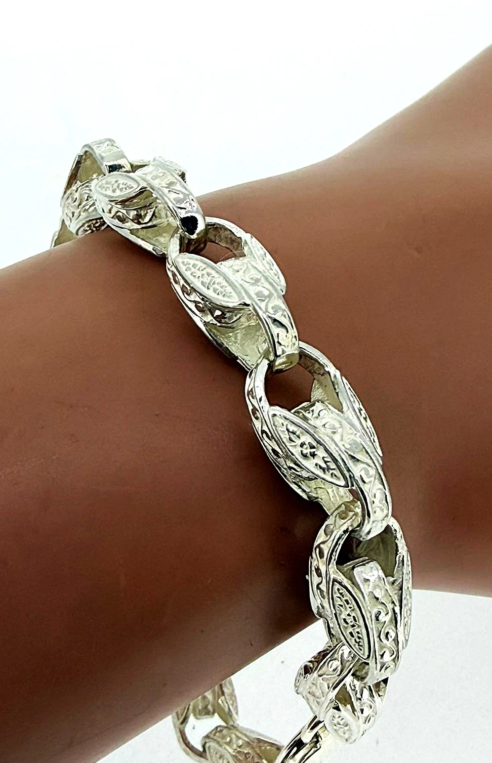 Solid Sterling Silver 8.7mm Tulip Link Bracelet 31.7g ( Upto 9 inch)
