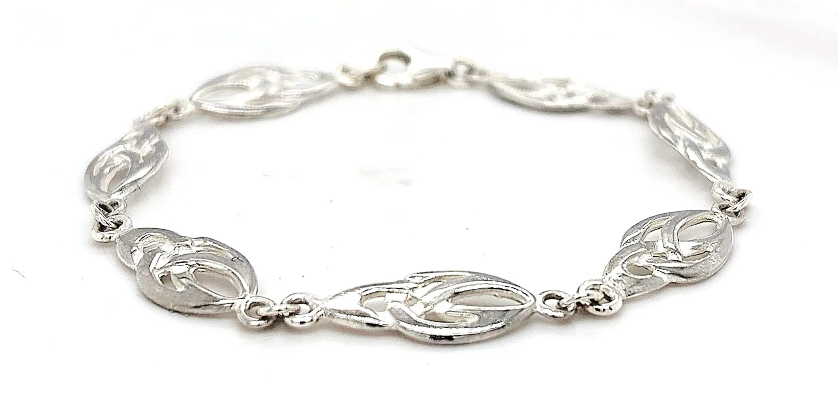Elegant and heritage-inspired, this sterling silver Celtic bracelet features intricate Celtic detailing that reflects timeless craftsmanship and symbolic design. Its refined style makes it a versatile piece, perfect for everyday wear or special occasions. Crafted from high-quality 925 sterling silver, the bracelet weighs 6.1 grams and measures 7.5 inches in length, offering a lightweight and comfortable fit. The classic Celtic motif adds character and meaning while maintaining a clean, wearable look. A beautiful expression of tradition and style, this Celtic bracelet makes a thoughtful gift for birthdays, anniversaries, or anyone who appreciates heritage-inspired silver jewellery.