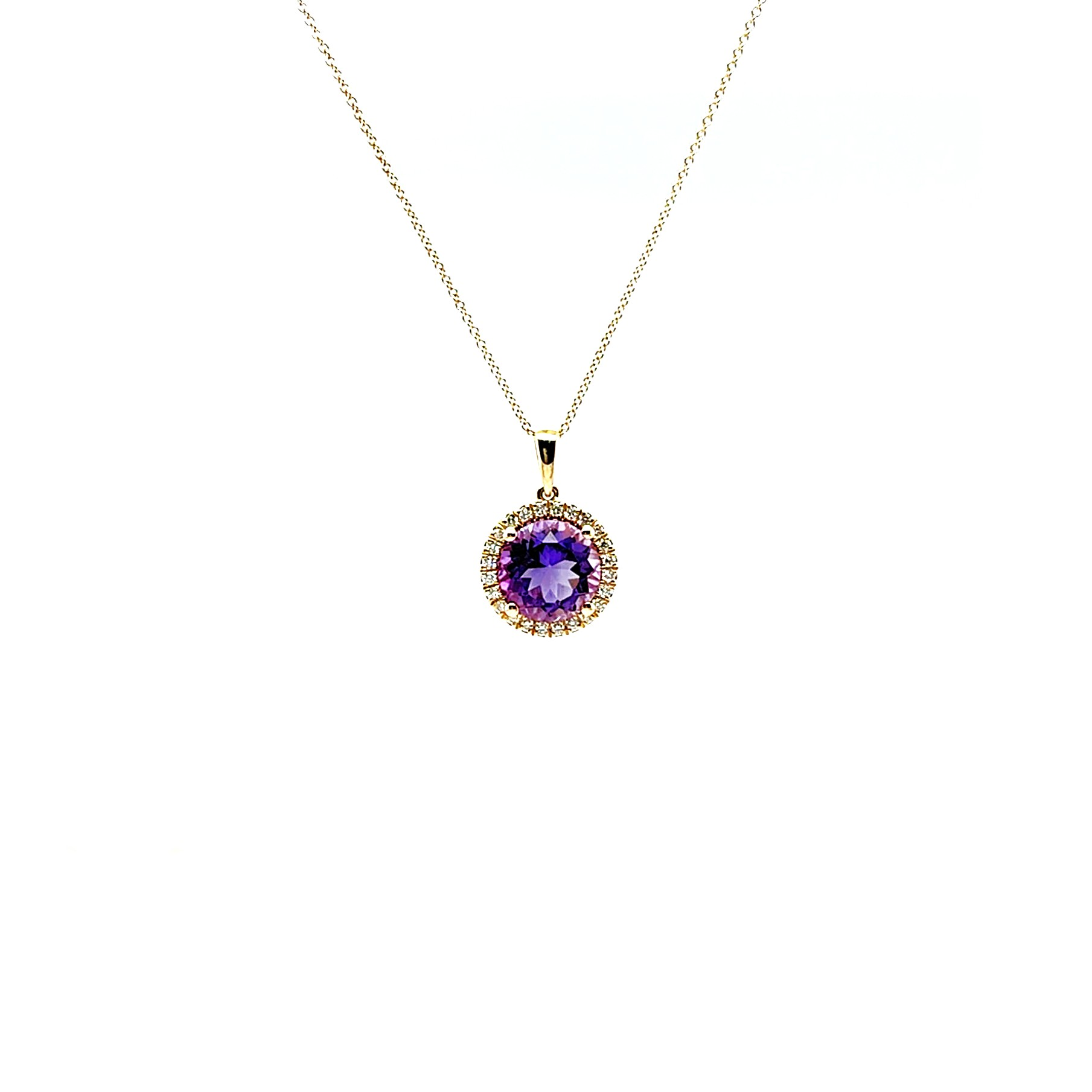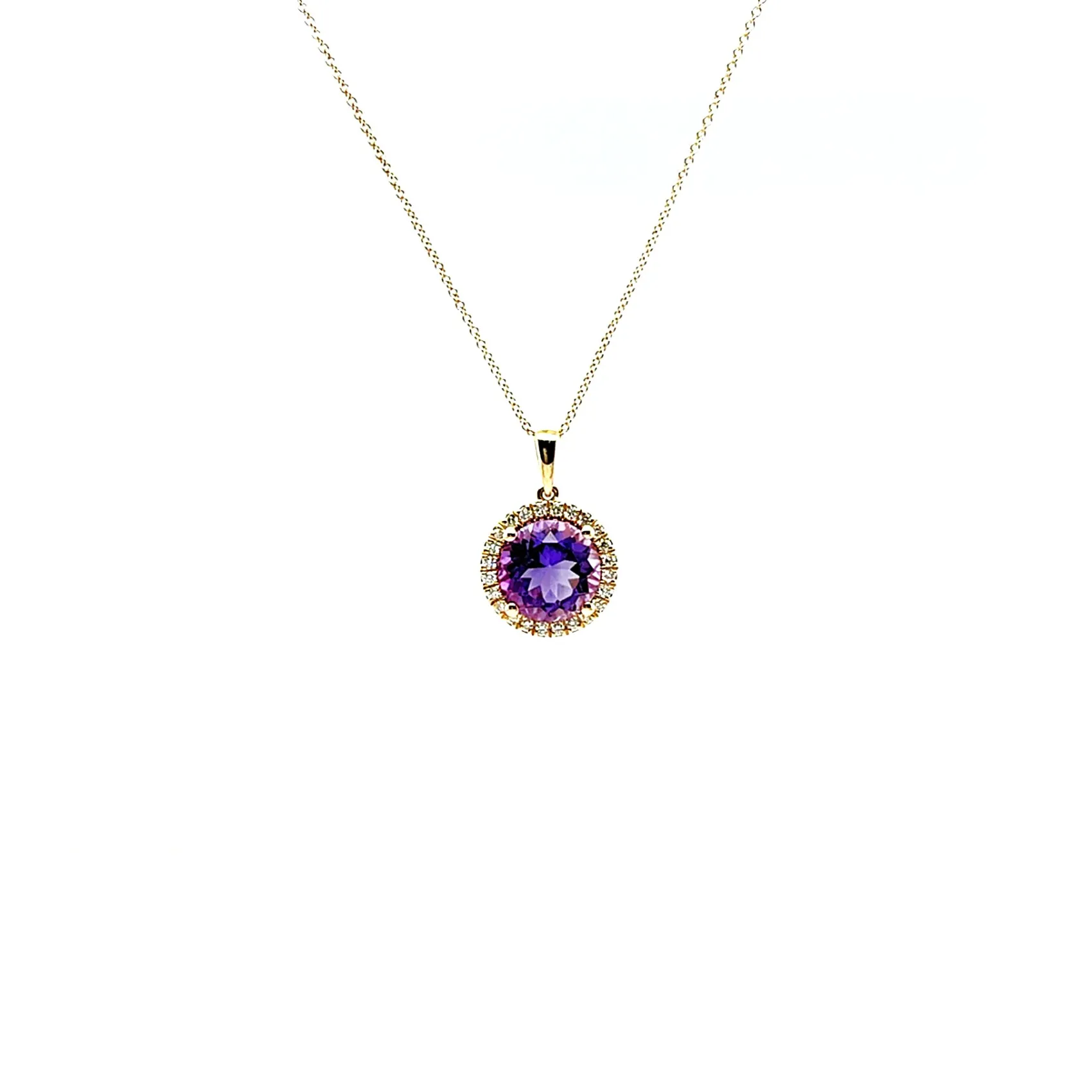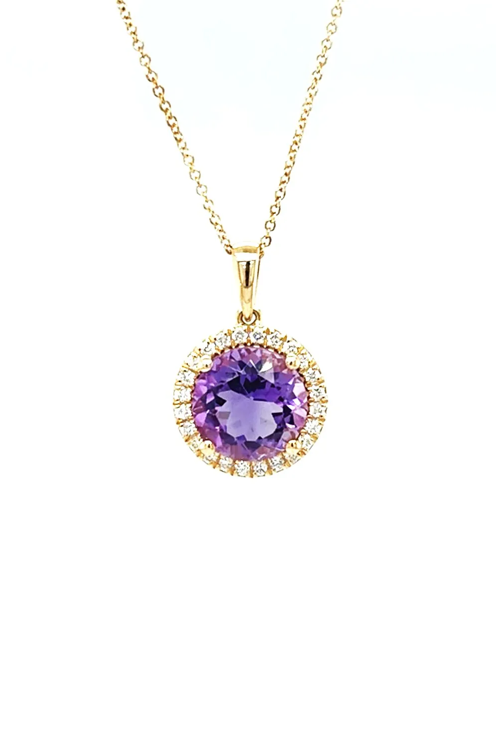 Elegant and timeless, this beautiful pendant showcases a captivating 2.53 carat amethyst at its centre, admired for its rich purple hue and classic appeal. The vibrant gemstone is perfectly complemented by 0.19 carats of sparkling diamonds, adding brilliance and a touch of luxury to the design. Expertly crafted in 9ct yellow gold, the pendant offers a warm, polished finish that enhances the natural beauty of the stones. Suspended from a 16/18 inch adjustable chain, it provides versatile wear, allowing you to style it comfortably with a variety of necklines. Weighing approximately 2.95 grams, this pendant is delicately balanced for everyday elegance while still making a refined statement. Whether chosen as a thoughtful gift or a sophisticated addition to your own jewellery collection, it is a piece designed to be treasured for years to come. Key Features: